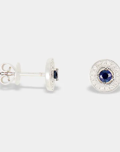 Corinne oorbellen 0.09 ct diamanten & 0.17 ct saffieren witgoud