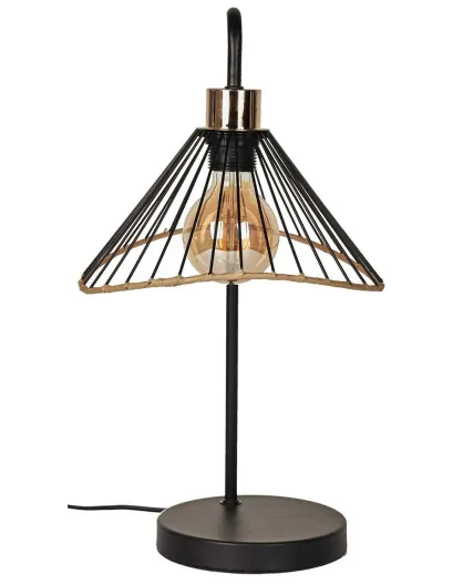 Tafellamp van rotan en zwart metaal - 30x47x25 cm