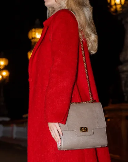 Tine taupe schoudertas van rundleer - 24x23x7 cm