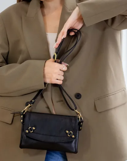 Joe tasje van zwart rundleer - 20x12,5x3 cm