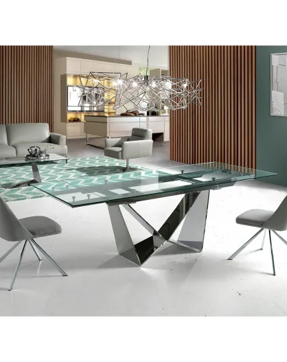 Uitschuifbare rechthoekige eettafel met transparant/zilveren blad - 160x90x75 cm