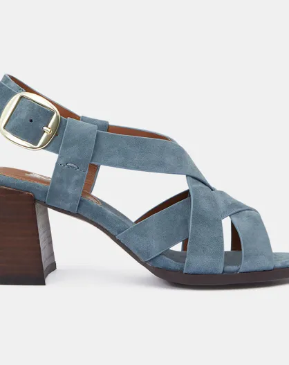 Blauwe sandalen van jeansleer met hak - Hak 7 cm