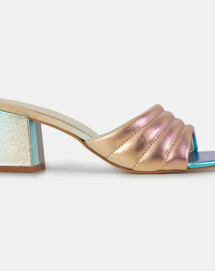 Veelkleurige gewatteerde leren muiltjes - Hak 6 cm