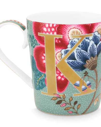 Alphabet Floral Fantasy K blauwe porseleinen mok - 350ml