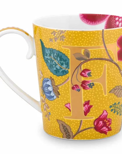 Alphabet Blushing Birds F gele porseleinen mok - 350ml