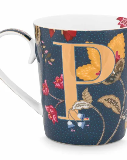 Alphabet Floral Fantasy P blauwe porseleinen mok - 350ml