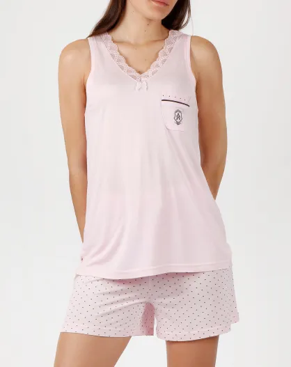 Roze pyjama, tanktop en korte broek