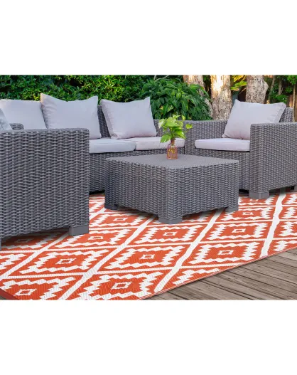 Vahiné rechthoekig buitentapijt met terracotta ruitpatronen - 270x470 cm