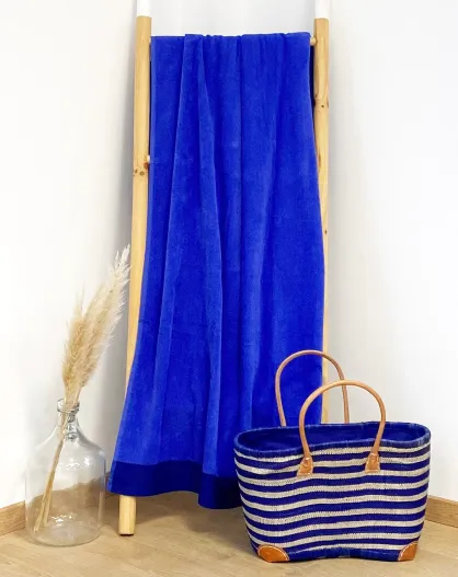 Shady velvet badhanddoek in badstof beige/blauw - 90x160 cm