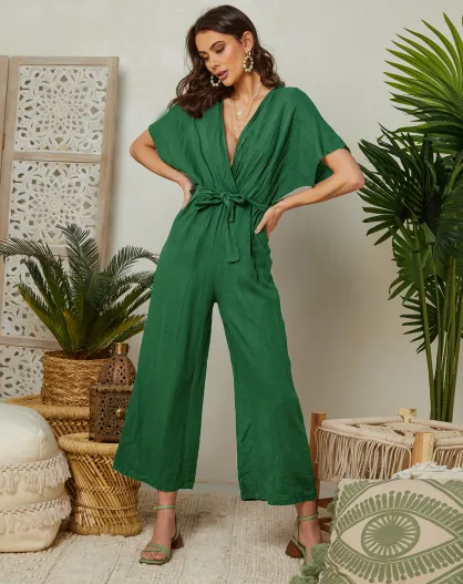 Gucci groene Yaona jumpsuit van 100% linnen