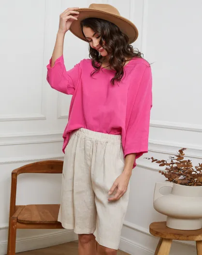 Frisse fuchsia top van linnen en katoen