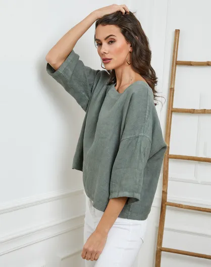 Kaki top van 100% linnen Georginia