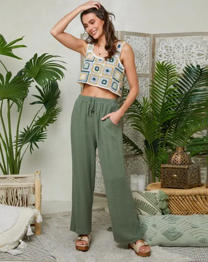 Kaki broek van 100% linnen Clara
