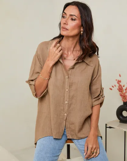 Camel Imani overhemd van 100% linnen