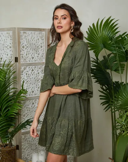 Mathilde kaki jurk van 100% linnen