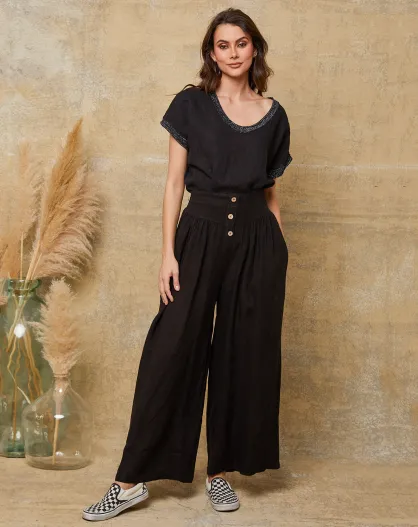 Kendra zwarte broek van 100% linnen