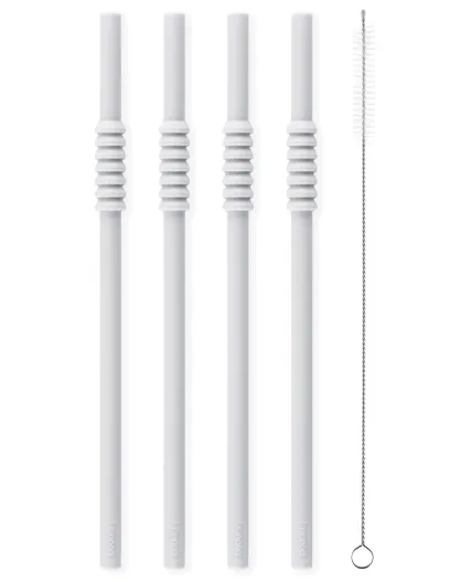 4 grijze Bistro siliconen rietjes met roestvrijstalen wattenstaafje