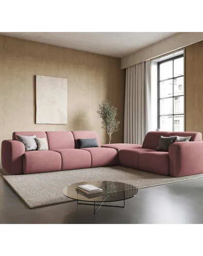 Lola 6-zitsbank, roze, rechter hoekbank, 315x250x72 cm