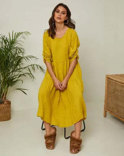 Lantana saffraanjurk van 100% linnen