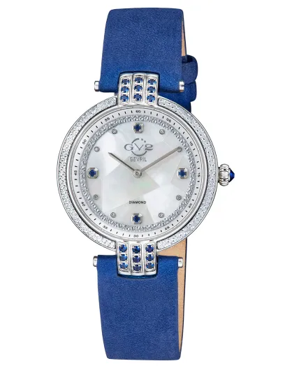 Matera kwartshorloge voor dames in suedeleer en diamant 0,04 kt blauw