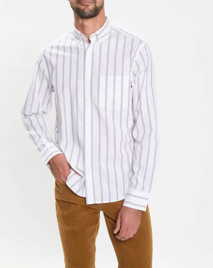 Wit/veelkleurig gestreept overhemd van popeline met normale pasvorm