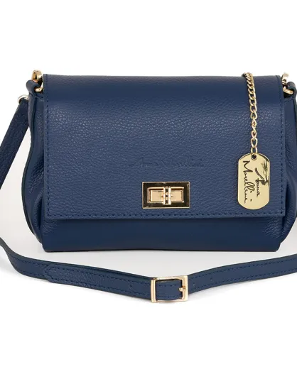 Matalia blauwe leren schoudertas - 22x17x9 cm