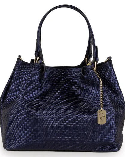 Eloisa marineblauwe leren handtas - 38x28x16 cm