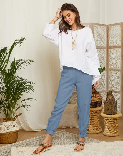 Paola indigobroek van 100% linnen