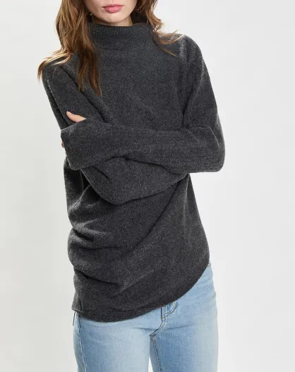 Donkergrijze, gedrapeerde gebreide trui van 100% wol