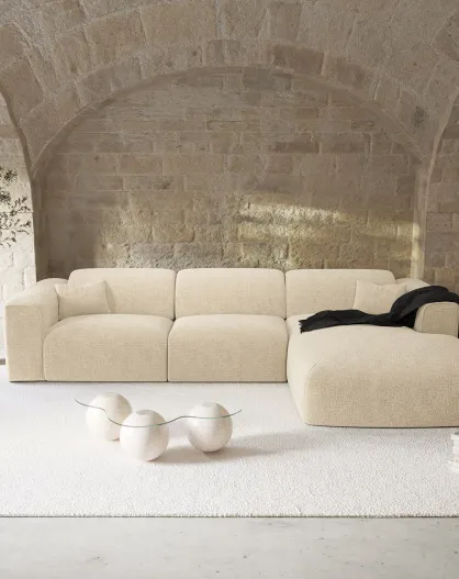 Express nova converteerbare hoekbank crèmekleurig fluweel met textuur - 165x280x73 cm