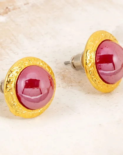 Medios goud/rode oorbellen