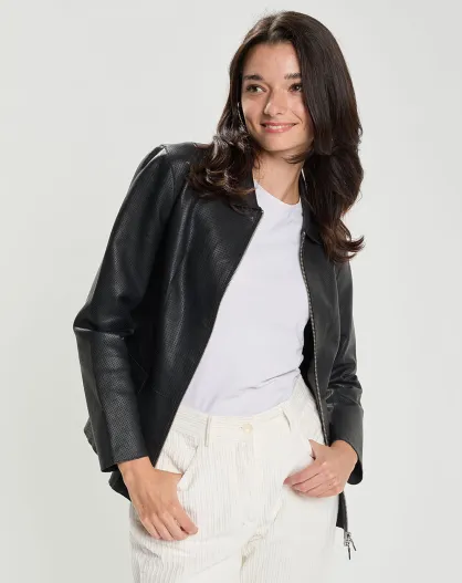 Cyrana zwarte perfo leren jas van lamsvlees