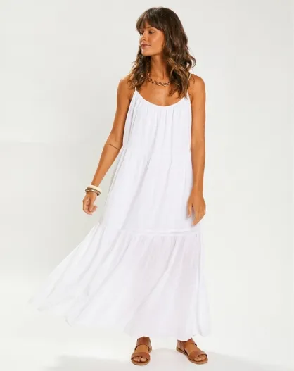 Ramiz ecru lange jurk van 100% katoen en gaas