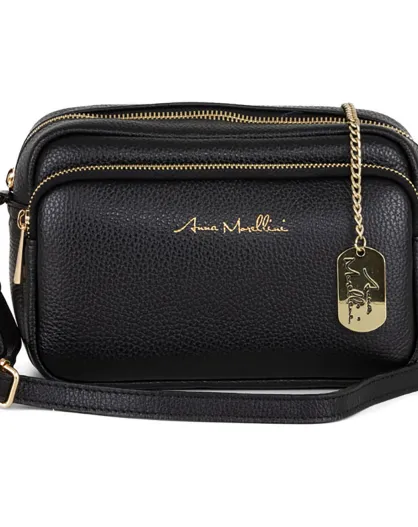 Zwarte leren schoudertas van Tabita - 22x15x10 cm