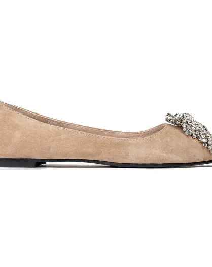Let It Shine beige fluwelen leren ballerina's