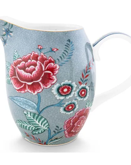 Grote porseleinen zalfpot met blauwe bloemen voor het festival - 7,6x15,4x19,2 cm