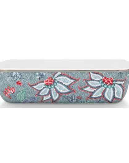 Flower Festival blauwe rechthoekige porseleinen ovenschaal - 18,5x6,7x27,4 cm