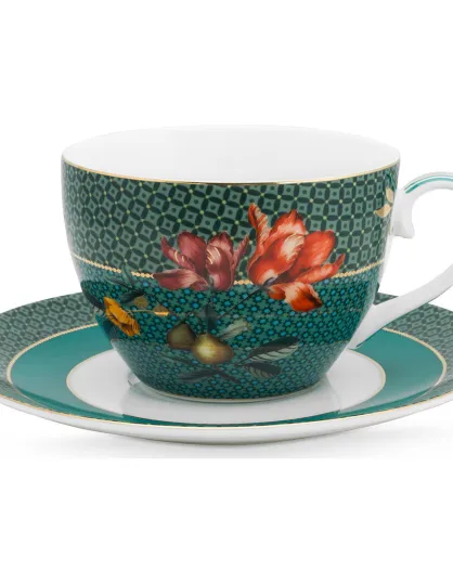 6 groene Winter Wonderland theekopjes en schoteltjes voor vogels - 16,2x7,5x16,2 cm