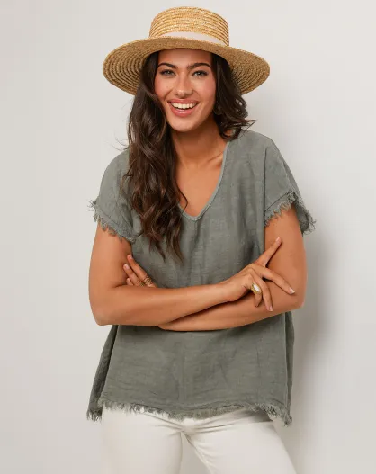 Axel kaki groene top van 100% linnen