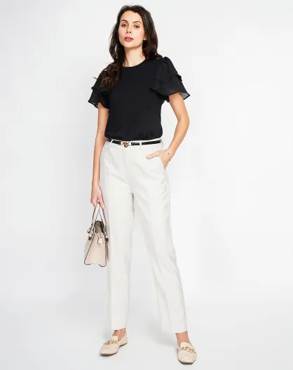 Beige broek van linnenmix Léna