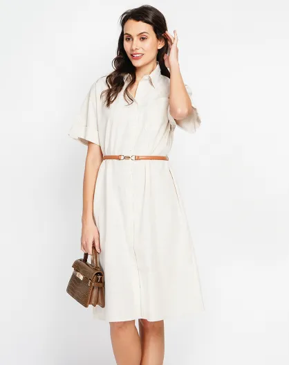 Beige jurk van jade-linnenmix