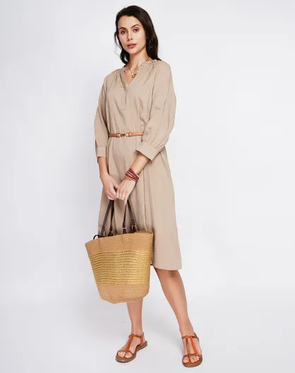 Camelkleurige jurk van linnenmix Agathe