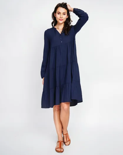 Marineblauwe jurk van linnenmix Soline