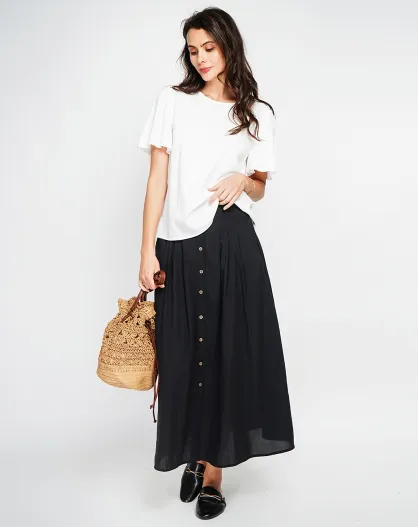 Zwarte rok van linnenmix in witte kleur