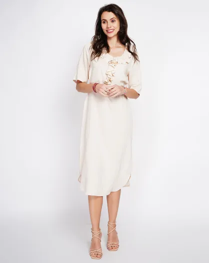 Margot beige jurk van linnenmix
