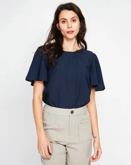 Mila top van marine-linnenmix