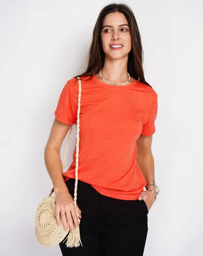Anouk T-shirt van rode linnenmix
