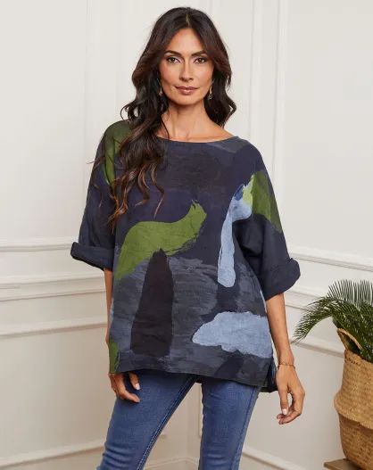 Marineblauwe blouse van 100% linnen Krik