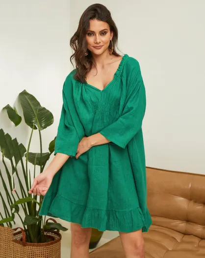 Groene jasmijnjurk van 100% linnen