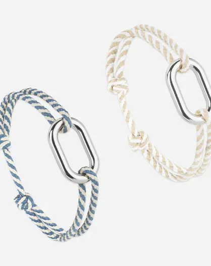 2 beige/wit/blauwe verzilverde armbanden Hune + Armor